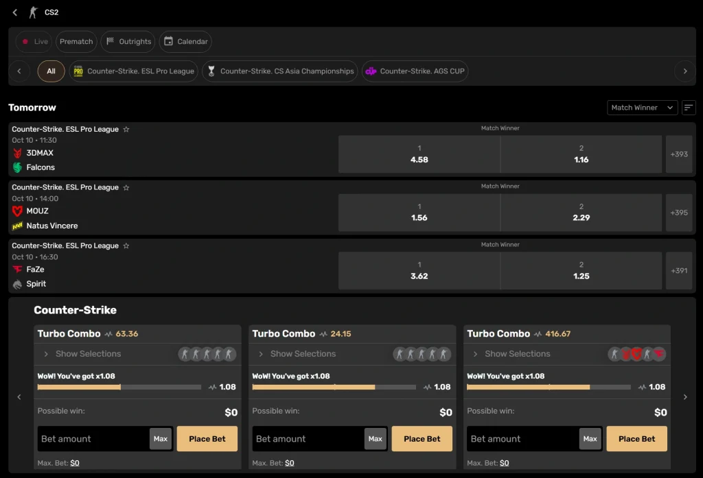 El mundo de los esports está en constante expansión, y en Fairspin estamos a la vanguardia. Cubrimos todos los torneos más grandes, con cuotas especiales y una variedad de mercados.